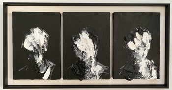 In questo trittico ho esplorato la condizione umana attraverso gesti astratti e semi-astratti, utilizzando un mix di acrilico, olio, pastello e vernice spray. Ogni pannello è un'esplosione… di intensità emotiva, dove i contrasti in bianco e nero evocano una profondità di sentimento e mistica. Le figure, che emergono dall'oscurità, rappresentano la resilienza, l'identità e la lotta per l'espressione di sé. Quest'opera d'arte invita alla contemplazione e porta un'energia potente e introspettiva in qualsiasi spazio.