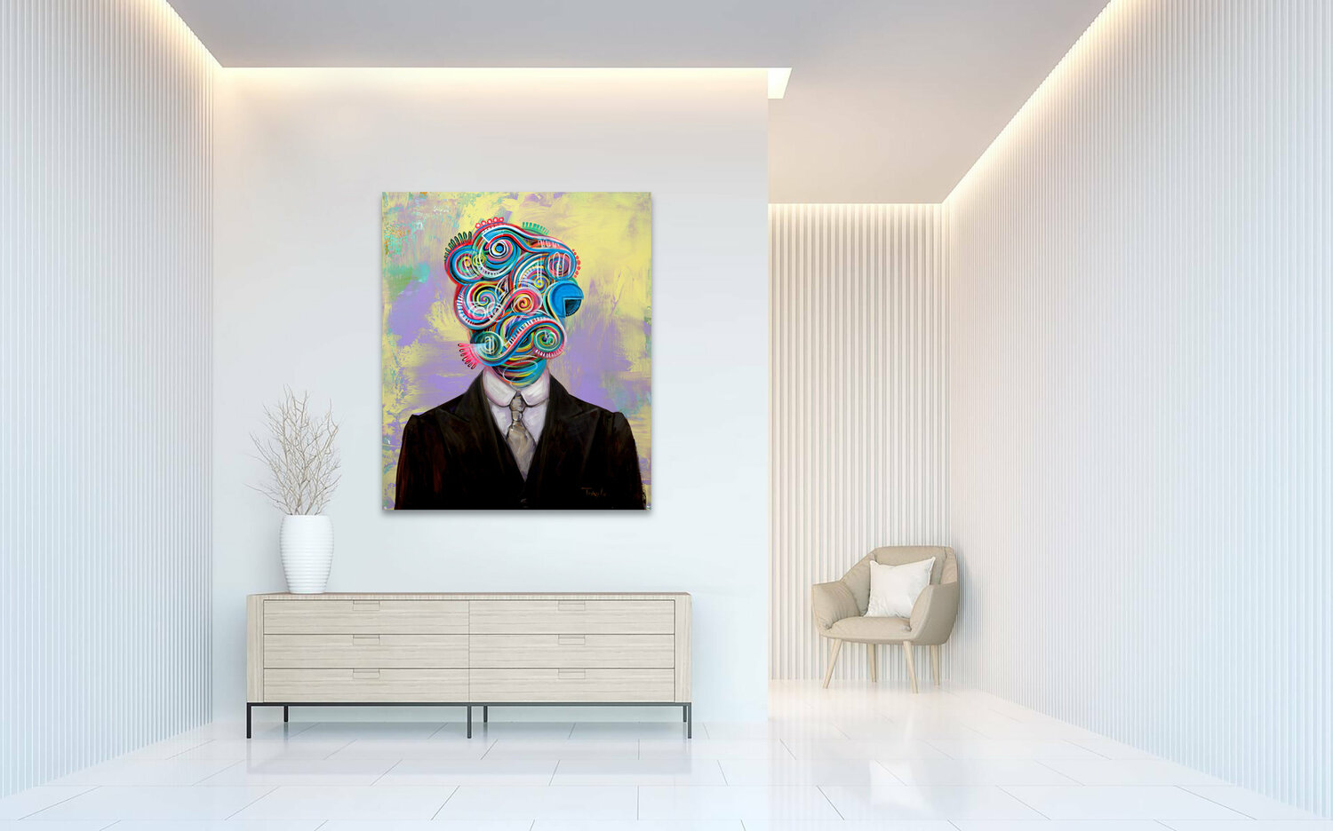 proprio universo mentale. Quest'opera invita energia e introspezione in qualsiasi spazio, innescando un dialogo colorato con l'ambiente circostante.