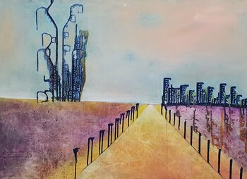 Nel mio lavoro, petrolio, carbone e catrame si intrecciano per creare un mondo da sogno che unisce impressionismo e surrealismo. La rappresentazione simbolica cattura la profondità emotiva e accompagna lo spettatore in un viaggio che tocca l'inaspettato. La stanza si riempie di una leggera tensione e ti incoraggia a pensare alle connessioni nascoste. Una potente conversazione tra colore e forma porta un'energia dinamica in ogni casa.