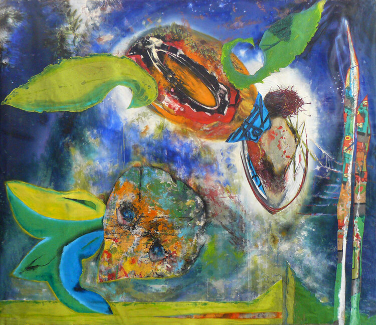 In questo lavoro approfondisco l'astratto e il semi-astratto per esplorare l'espressionismo e la metafisica. Acrilico e collage si uniscono per catturare un turbinio di emozioni, forme e texture che invitano all'interpretazione personale. È un dialogo visivo tra conscio e inconscio, dove ogni elemento vibra di energia e suggerisce una storia più profonda. Questo dipinto porterà una presenza audace e una profondità enigmatica a qualsiasi spazio.