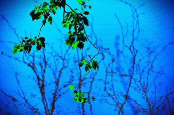 Feuilles vertes sur l'azur figé