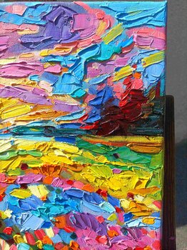 "Ho un ricordo molto bello della Toscana. Questo piccolo dipinto mi riporta per un attimo indietro e il paesaggio colorato mi rende felice."