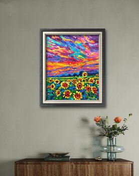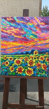 Un appassionato d'arte, acquisto effettuato nel mese di dicembre 2023: "Golden season in Tuscany", Olio su Lino , 15,7x15,7 in
