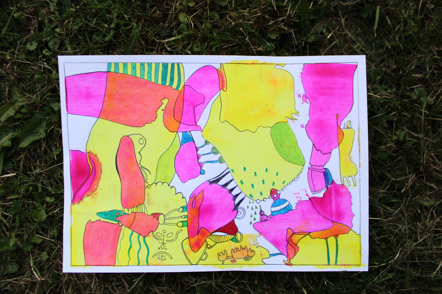 In quest'opera, ho riversato energia vibrante e spontaneità attraverso feltro e penna, lasciando che i colori fluissero liberamente e interagissero. È una danza astratta di forme e tonalità che invita alla curiosità e alla gioia. Volevo creare un'evasione vivace che accendesse l'immaginazione, portando un'esplosione di ritmo e calore edificanti in qualsiasi spazio. Quest'opera d'arte vibra di vitalità giocosa e infinite possibilità.