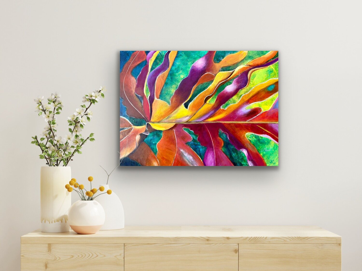 Verónica Chauvet utilizza olio, acrilico, inchiostro, acquerello e tecniche miste, attingendo a una solida formazione attraverso workshop e corsi internazionali, dopo essersi reinventata professionalmente. Le sue opere combinano lo stile figurativo con una svolta verso l'astratto, distinguendosi per l'uso audace e vibrante del colore per rappresentare le foglie e la natura viste da angolazioni sorprendenti. Chauvet trasmette un ottimismo contagioso, ispirandoci a scoprire nuovi modi di vedere il mondo e a trovare speranza nella quotidianità.