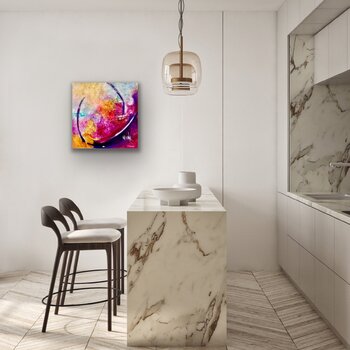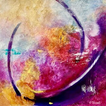 In quest'opera ho utilizzato la pittura acrilica per esprimere un'energia vibrante e un movimento costante. I colori caldi e le forme curve rappresentano la connessione tra emozioni e pensieri. Volevo trasmettere un senso di fluidità e speranza, trasformando qualsiasi spazio in un luogo pieno di vita e luce.