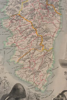 INFORMAZIONI: Superba incisione d'epoca stampata nel 1846 nello studio Combette di Parigi. Le illustrazioni dei luoghi e delle tradizioni del dipartimento attorno alla mappa sono state realizzate dal pittore Raymond Bonheur, padre… della pittrice e scultrice Rosa Bonheur.
