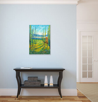 Un appassionato d'arte, acquisto effettuato nel mese di novembre 2024: "Piccolo uccellino blu.", Olio su Tela , 9,4x7,1 in