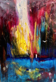 Nel realizzare questo pezzo, ho messo la mia anima nell'esprimere l'essenza viscerale della musica. Mentre i colori ad olio scendono lungo la tela, fondendosi in modo astratto, simboleggiano l’emozione cruda e sfrenata evocata dalla musica. I miei tratti espressionisti sono come melodie, profondamente armoniose ma vividamente contrastanti, che invitano gli spettatori in una sinfonia di splendore visivo. Questo dipinto incarna il cuore pulsante di… melodie e ritmi, pronto a pulsare nello spazio, arricchendo la propria casa con lo spirito della vita sonora.