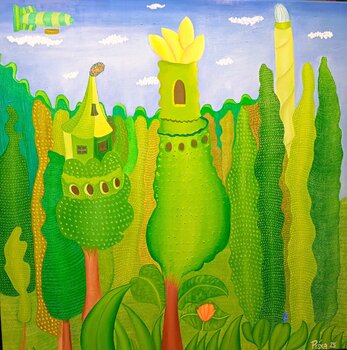 Ho riversato gioia e fantasia in questo dipinto a olio, celebrando verdi vibranti e forme giocose che invitano alla meraviglia. Ispirata dagli spiriti giocosi della natura, ho creato una foresta lussureggiante e onirica, dove ogni albero ha una storia. Quest'opera irradia calore e curiosità, perfetta per riempire uno spazio di energia vivace e un tocco di magia fantasiosa. È un sentito invito a sognare ed esplorare.