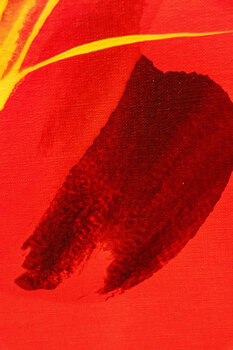 All’interno del ciclo delle forme organiche e dell’esplorazione dello spettro rosso, il rosso svela la sua duplice natura: a volte assertiva, ma anche intrinsecamente giocosa. Il percorso artistico di "Exploring Red" trova la sua ispirazione nelle vivaci opere di Ismael Lagares, dove la vivacità del rosso emerge non solo come formidabile ma anche malleabile. Il motivo centrale, un'interpretazione astratta di un pesce, è al centro dell'esplorazione… all'interno di questo pezzo. Eseguita su uno sfondo rosso vivido, la forma prende vita attraverso l'interazione del giallo, mentre le sue pinne mostrano una ricca tavolozza di tonalità scure: quasi nero, rosso e una sorprendente combinazione di verde e verde ftalo. Questa narrazione visiva mette in mostra il potenziale del rosso di essere allo stesso tempo imponente e stravagante domato, facendo eco alla gioiosa convinzione di Lagares nel potere di trasformazione di questa tonalità dinamica.