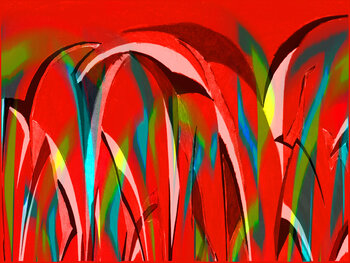 In questo lavoro fondo forme astratte e appassionati toni espressionisti per esprimere la profonda connessione tra la natura e lo spirito umano. I colori vivaci riflettono la dinamica e l'energia della forza vitale. C'è una metafisica nell'esecuzione digitale di questo pezzo che va oltre il visibile. Quest'opera d'arte ha lo scopo di portare un'energia vibrante e stimolante e stimolante in ogni stanza in cui è appesa.