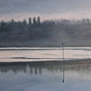 In quest'opera ho voluto dipingere la dolcezza malinconica delle tonalità monocrome di un paesaggio marino, tra cielo e acqua salmastra che scorre verso il mare. Ogni sfumatura acrilica esprime l'intensa tranquillità di un momento sospeso, dove la natura si riflette con poesia. Questo dipinto porterà un'atmosfera rilassante nella vostra casa, un invito alla contemplazione e all'evasione interiore.