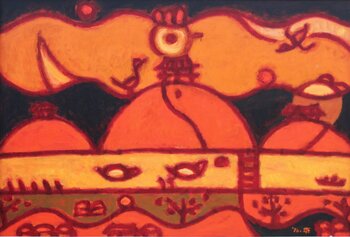 Youn Sung Park, un artista coreano scolpito da una stirpe di artigiani del legno, comunica principalmente attraverso la pittura. Il suo lavoro, che risplende con audaci toni rossi e caratterizzato da paesaggi astratti e texture a onde, rispecchia le tecniche delle pitture rupestri ancestrali, mentre si annida in una tavolozza unicamente coreana. Potentemente, le sue creazioni fungono da tributo introspettivo alla sua terra natale, evocando confortanti sentimenti di calore e familiarità.