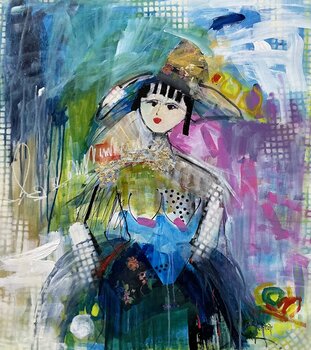 Marie Manon Corbeil은 개인적인 도전 속에서 '슬픔과 희망 사이에 예술이있었습니다'라는 그림을 그리기 시작했습니다. 인생의 어려움이 그녀에게 새로운 표현 수단을 제공했다는 것을 깨닫고, Corbeil은 현대 추상 작품 내에서 기쁨을 전달하고자합니다. 그녀는 조각을 시작하기 전에 양식을 그리고 각 캔버스 아래에 긍정적 인 단어를 씁니다. 계획되지 않은 스트로크를 유발하기 위해 큰 브러시를 사용하고 손가락을 사용하여 작곡의 생생한 색상을 최적화합니다.