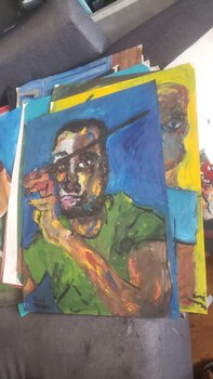 In dit werk boor ik de diepten van emoties en persoonlijke expressie aan. De felle kleuren en sterke lijnen belichamen mijn zoektocht naar waarheid en authenticiteit. Dit schilderij, dat de intensiteit van mijn reflectie in deze fase van mijn leven vastlegt, verheerlijkt een passie voor het leven en een rijke innerlijke dialoog. Elke penseelstreek is een woord uit mijn ziel, dat belooft kracht en inspiratie over te brengen naar de ruimte waarin het… zich bevindt.