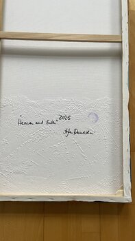 In dit werk heb ik de uitgestrektheid van de hemel teruggebracht tot zijn meest minimalistische vorm en de aarde afgebeeld als een levende kracht met behulp van warme, gouden texturen. Met acrylverf en pigmenten streefde ik naar een balans tussen rust en energie, waardoor de kijker in een meditatieve staat wordt gebracht. Dit schilderij brengt harmonie en lichtheid in elke ruimte; het is pure emotie in kleur en structuur.