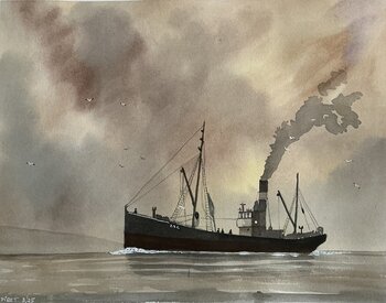 In dit werk wilde ik de melancholie en het mysterie vastleggen van een oud schip dat over eenzame wateren vaart. Ik gebruikte waterverf om die etherische, bijna dromerige sfeer te creëren, waar rook zich vermengt met de lucht. Mijn bedoeling was om nostalgie en avontuur op te roepen, rust en diepgang bij de kijker te brengen en hun ruimte te vullen met verhalen en emoties uit het verleden.