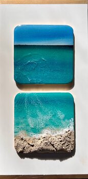 Ik heb dit stuk gemaakt met een mix van acryl en spray, zacht verzegeld in hars en getextureerd met zand. Het is een abstractie van de geest van de oceaan, bedoeld om de dubbele aard van kalmte en vitaliteit over te brengen. Met elke penseelstreek probeerde ik de essentie van het gefluister en gebrul van de zee vast te leggen. Dit kunstwerk is een vat van rust en energie voor elke ruimte, en geeft het een evenwicht dat tot de ziel spreekt.