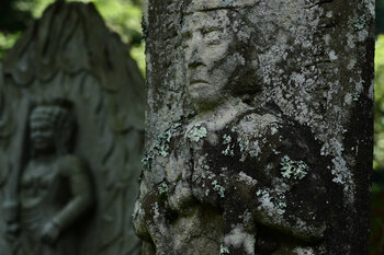 Deze foto is genomen in juli 2024 in een boeddhistische tempel Shuzenji Oku-no In (gesticht in de 9e eeuw), Izu City, prefectuur Shizuoka, Japan.
