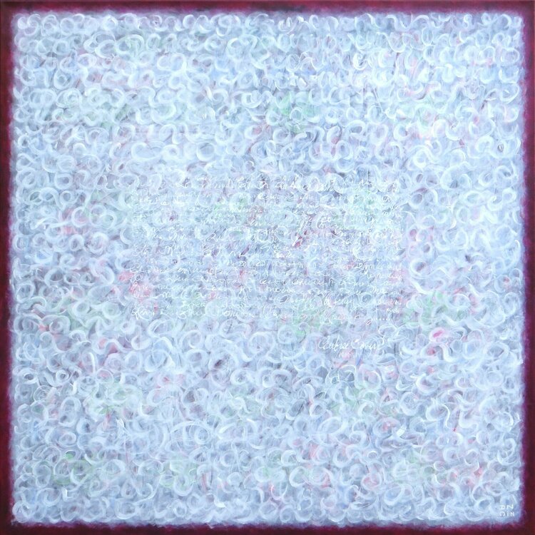 Dit schilderij is een ode aan zachtheid, lichtheid, effect weergegeven door voluten in pastelkleuren die de ruimte van het canvas binnendringen en een gevoel van zwaartekracht geven. Het gebaar is zowel picturaal als schriftuurlijk. Bezit van het werk is vaak automatisch schrijven in overmaat of hol .