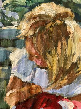 In dit schilderij probeerde ik de onschuld en serene energie van een zonnige middag vast te leggen, met twee kinderen die verdwaald zijn in een wereld van gefluisterde geheimen. Met behulp van acrylverf mengde ik de zachte, textuurrijke penseelstreken van het impressionisme met de aandacht voor detail van het realisme, waardoor zowel de levendigheid als de subtiliteit van het veranderende licht werd overgebracht. Het kunstwerk straalt een gevoel… van vredige nostalgie en jeugdige verwondering uit, en voegt een hartverwarmende aanwezigheid toe aan elke ruimte die het siert.