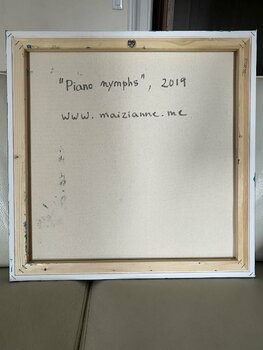 Kunstwerk op houten raamwerk. Klaar om op te hangen. Omlijsten op aanvraag.