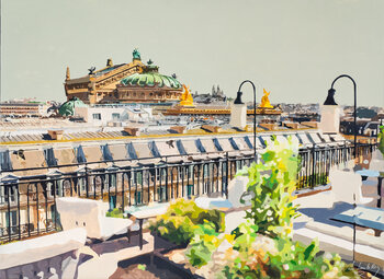 Ik wilde het zachte, levendige licht vastleggen dat de Parijse daken streelt, waarbij ik geometrische precisie combineerde met impressionistische vloeiendheid. Elke penseelstreek van acrylverf brengt deze unieke energie over en nodigt je uit om de sereniteit van een bevroren moment te ervaren. Dit kunstwerk brengt een stralende en warme sfeer in je huis, als een raam dat uitkijkt op een zonovergoten Parijs.