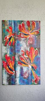 In mijn kunstwerken maak ik abstract bloemenvuurwerk met behulp van acryl, inkt, krijt en pigmenten. De levendige rode tinten, vakkundig gemengd met kalmerende blauwe tinten, belichamen een pure emotionele ontlading. Deze compositie is een eerbetoon aan de wilde schoonheid van de natuur, een diepgaande dans tussen kleur en vorm die ruimtes zal vullen met energie en passie. Elke penseelstreek is bedoeld om kijkers te inspireren en uit te dagen om… in de diepten van hun eigen emotionele wereld te duiken.
