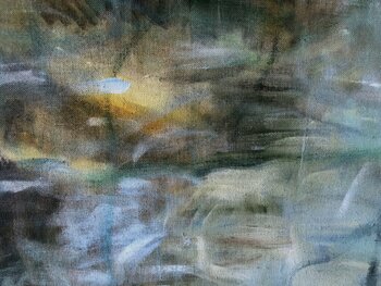 Door herhalingen, verschillende richtingen in penseelstreken en verschillende diepte-effecten te gebruiken, creëert hij abstracte landschappen die wisselen tussen iets herkenbaars en tegelijkertijd volkomen onbekends.