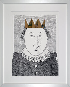 Chinese inkttekening. Met in reliëf een kroon van gekleurde houten strips.