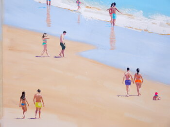 Een kunstliefhebber, aankoop gedaan in juni 2024: "Girls beach time", Pastel, Potlood op Papier , 14x11in