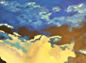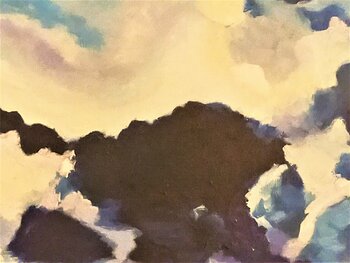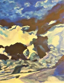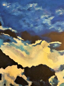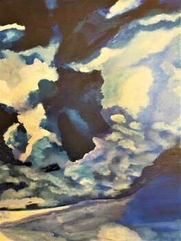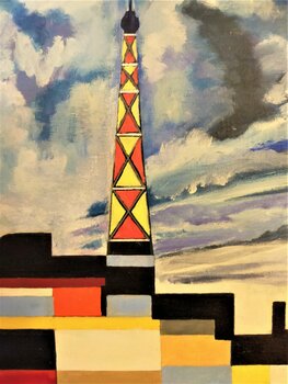 De Eiffeltoren lijkt verloren in het midden van deze stormachtige, stormachtige lucht, maar zoals het motto van Parijs het zo goed zegt, Het motto van de stad, "Fluctuat nec mergitur" ("Wordt verslagen door de golven maar zinkt nooit") , als een oerdegelijke boot. De kunstenaar houdt van zijn stad en dat voel je. Ze heeft vooral het voordeel direct naast de Eiffeltoren te wonen en deze Iron Lady geeft haar altijd veel inspiratie.