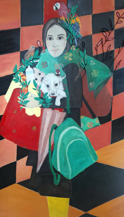 In dit werk combineerde ik olieverf en borduurwerk om een portret te creëren waarin droom en werkelijkheid samenkomen.