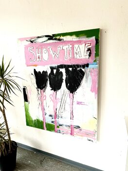 Kunstwerk op houten raamwerk. Klaar om op te hangen. Omlijsten op aanvraag.