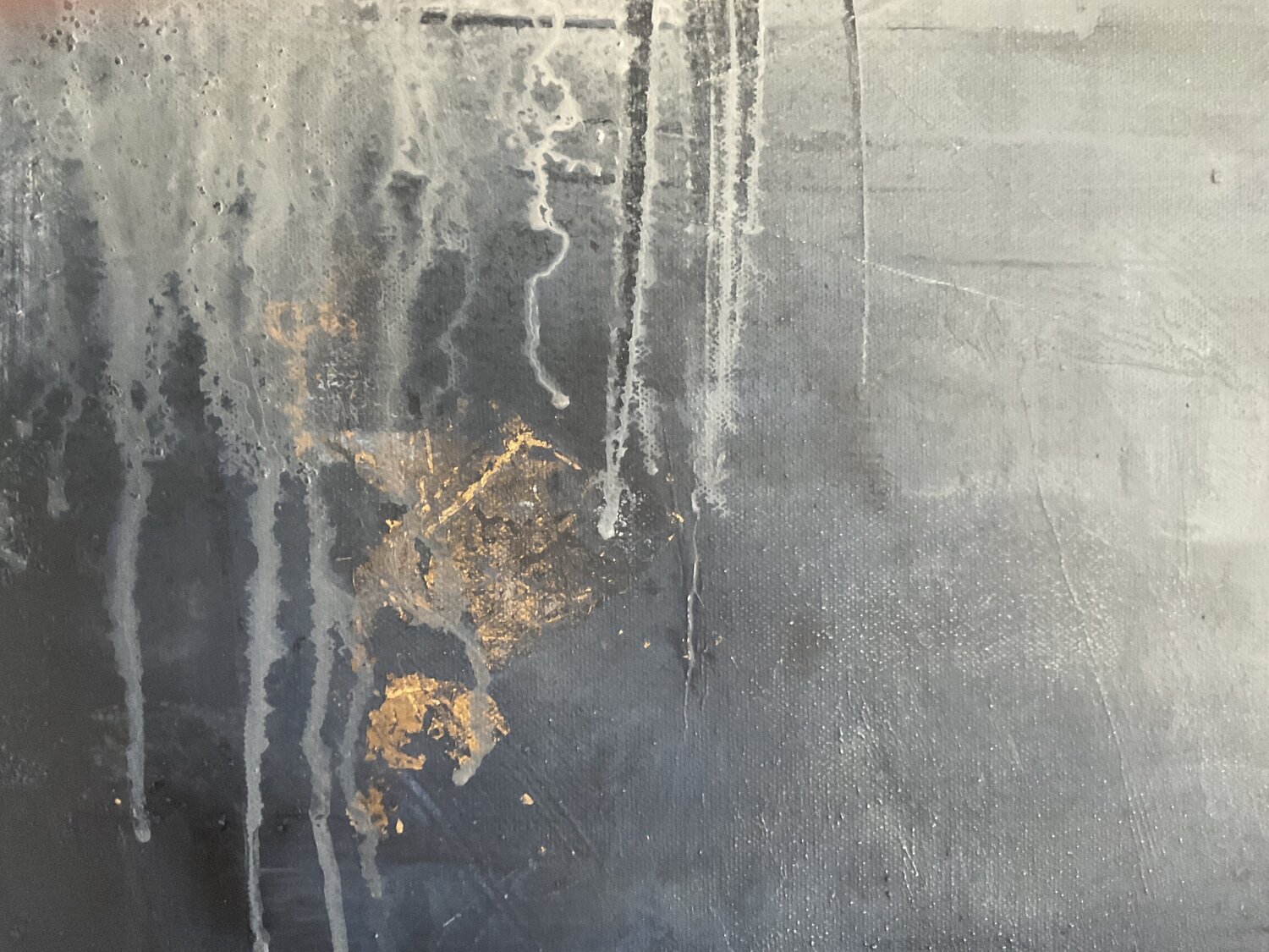 « "Elk canvas nodigt me uit voor een reis die ik ontdek terwijl het vordert. Mijn hand laat een groot deel aan het toeval over, mijn hand leidt mijn emoties op canvas, als muzieknoten." »