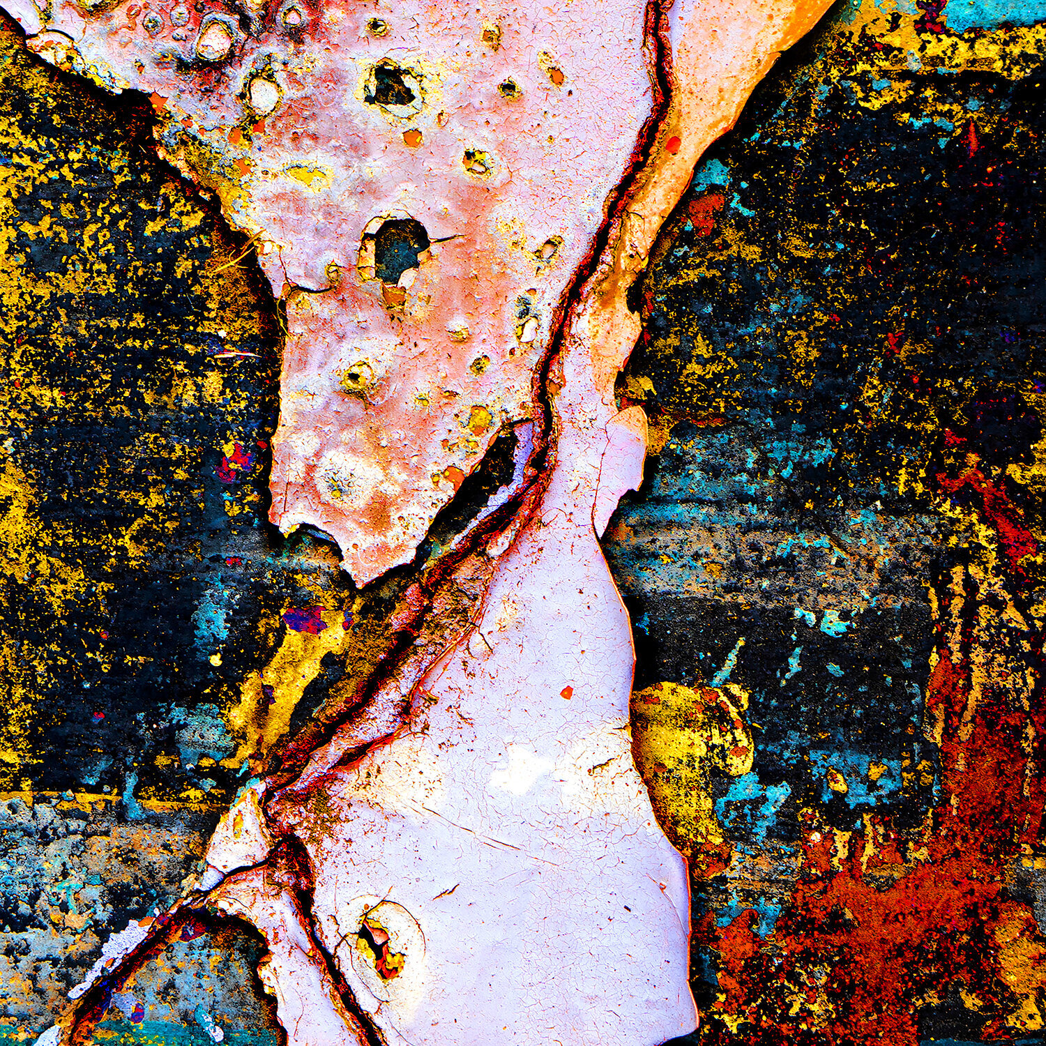Bij het maken van dit stuk koesterde ik de levendige wisselwerking van kleuren en texturen, waarbij ik de essentie van de impact van de tijd op oppervlakken vastlegde. Elke lijn en scheur vertelt een verhaal van verval en veerkracht, en bootst de onvermijdelijke transformaties van het leven na. Ik wilde emoties van nostalgie en contemplatie oproepen, en kijkers aanmoedigen om na te denken over de schoonheid die inherent is aan het verstrijken van… de tijd. Dit kunstwerk kan een ruimte energie geven met zijn stoutmoedigheid en diepte, en een opvallend middelpunt worden dat uitnodigt tot introspectief denken.