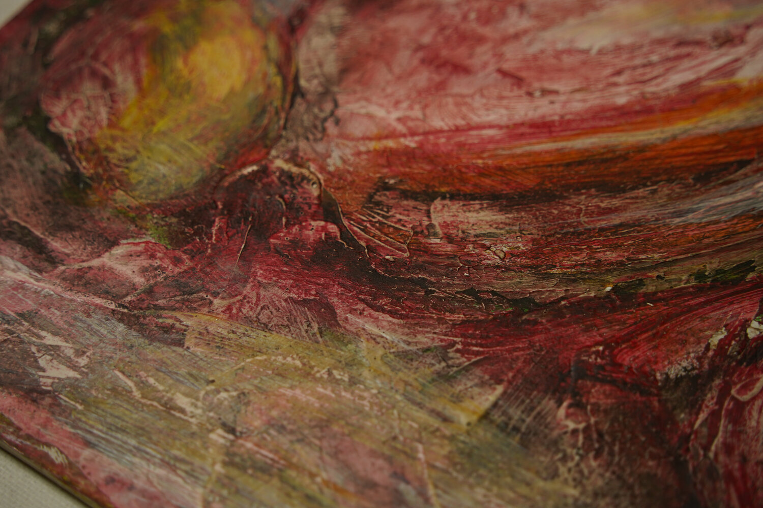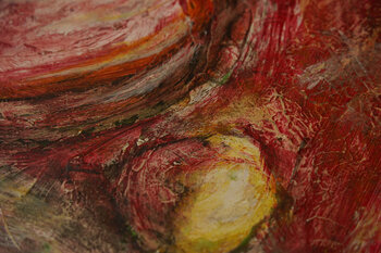 Dit werk bevindt zich op de grens van abstractie en expressionisme en herinterpreteert het traditionele stilleven door middel van rauwe, fysieke kracht. De intensiteit van de compositie komt zowel tot uiting in het levendige kleurenpalet als in de vorm.