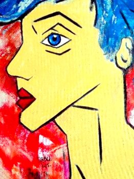 In dit kunstwerk wilde ik kracht en levendigheid vastleggen door middel van geometrische lijnen en felle kleuren. Het intense contrast tussen het levendige blauw van het haar en het energieke rood van de achtergrond drukt een innerlijke passie uit, terwijl de kubistische stijl de veelzijdige aard van de menselijke ziel onthult. Dit kunstwerk zal uw ruimte verrijken en een vleugje lef en moderniteit geven.