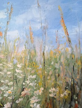 Dit schilderij gaat over de rust die alleen de natuur kan geven. Over het vinden van het gevoel van in een simpele bloem te zijn. Over het kennen van de ware schoonheid. Over het begrijpen van het geluk van gewoon te zijn zoals je bent. Omdat er waarde zit in elk moment waarop je trouw bent aan jezelf.