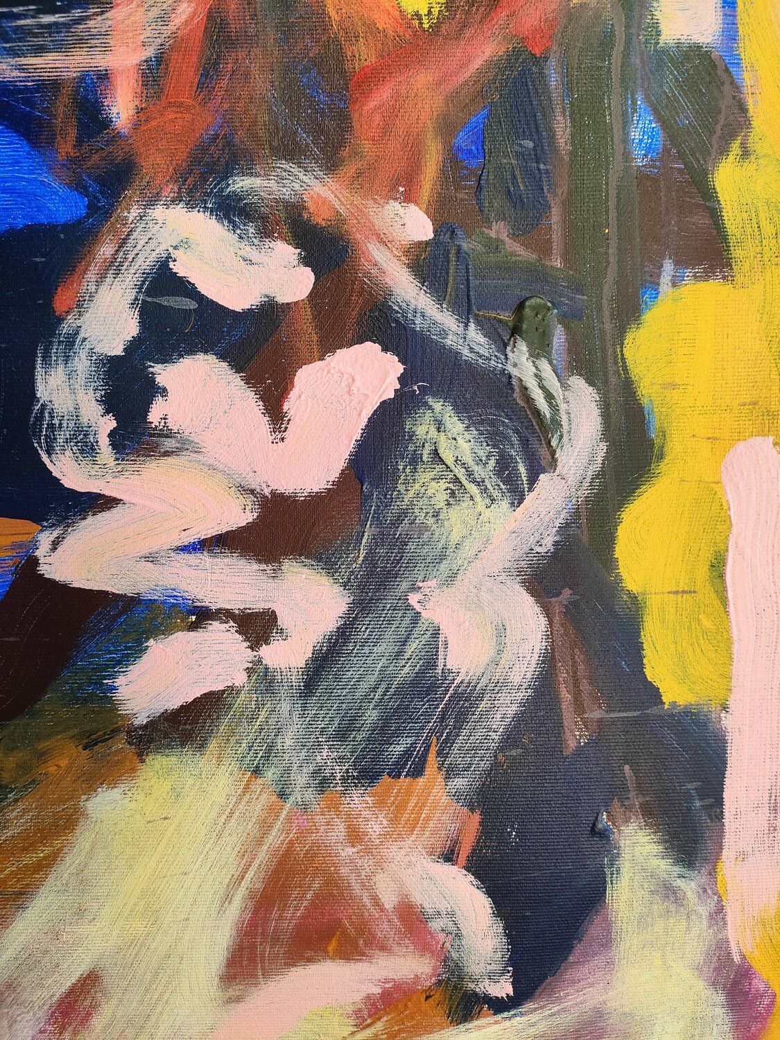 In dit werk dook ik in het hart van een explosie van kleuren, waar elke aanraking met acryl een rauwe emotie, een vluchtige gedachte vertelt. Abstractie en expressionisme smelten samen tot een zeer persoonlijke visuele dialoog, die de kijker uitnodigt om zijn eigen gevoelens te onderzoeken. De levendige energie van dit schilderij is een permanente uitnodiging tot optimisme en reflectie in uw leefruimte.