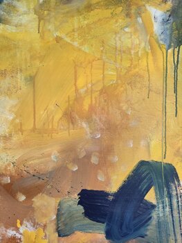 Vrolijk en kleurrijk werk met een warm palet en energieke gebaren.