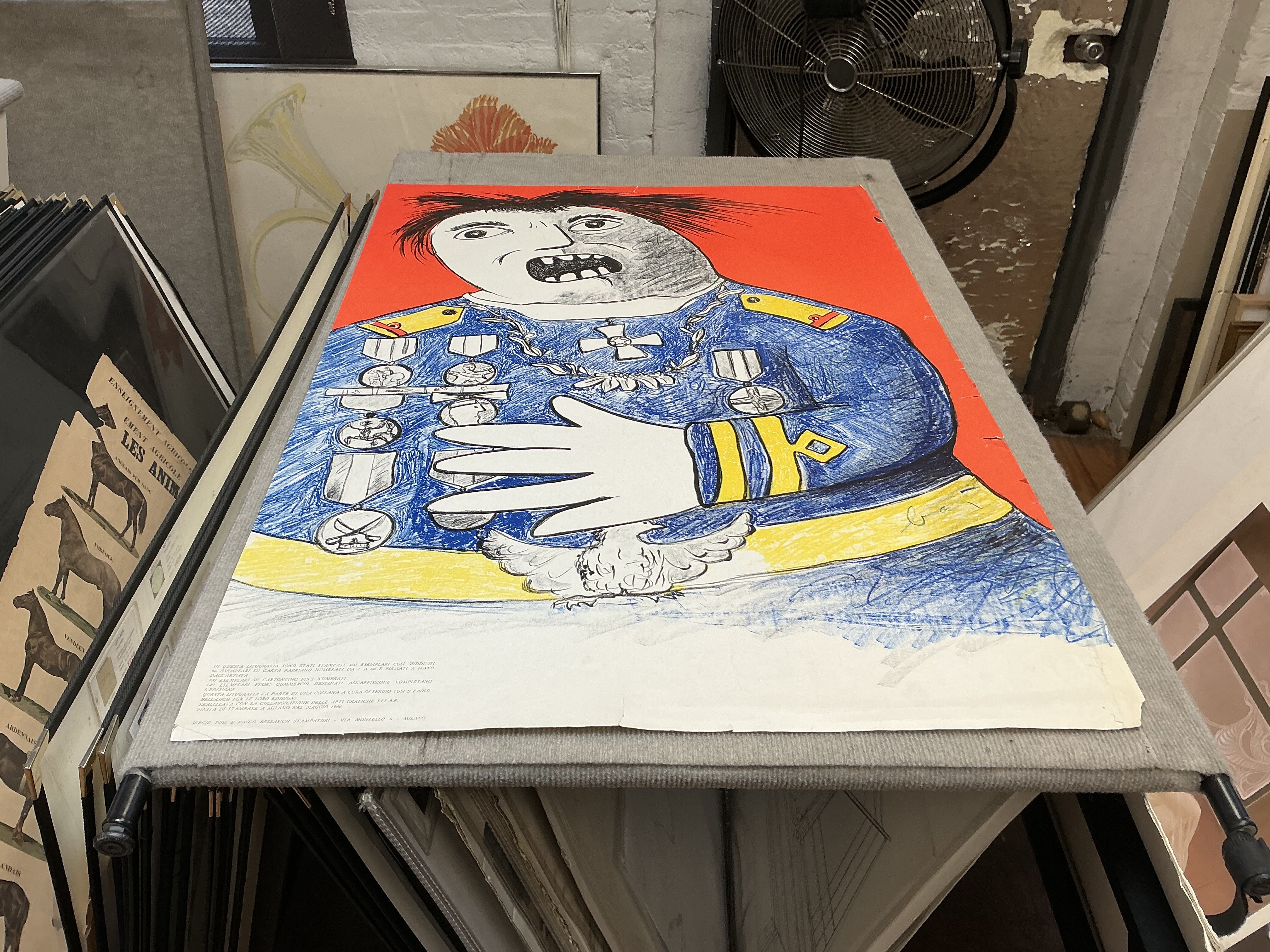 Enrico Baj ( 1924 – 2003 ) – Le stratége militaire Sahuguet d'Amarzit d'Espagnac – Mixed media with passamentrie and collage on brocade with originals medals and pins - 1971
