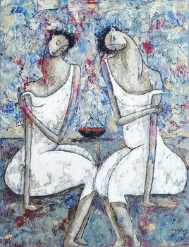 In mijn serie The Vrome van acryl en mixed media schilder ik vrouwen in verschillende emotionele toestanden. Hiervoor vertrouw ik op de composities, op de texturen van hun achtergronden en vooral op de kleur. Ik wil dat elk werk een onmiddellijke sensatie bij de kijker oproept bij het observeren, of het nu vreugde en geluk is, maar ook herinnering en melancholie. Natuurlijk zal de stemming van de persoon die naar het werk kijkt van invloed zijn,… het is volledig subjectief, vandaar mijn interesse in het kunnen overbrengen van een emotie, een gevoel dat de kijker ontroert. De vrouw in haar lichamelijke schoonheid en symboliek was en is een onvergelijkbare en oermuze voor kunstenaars.