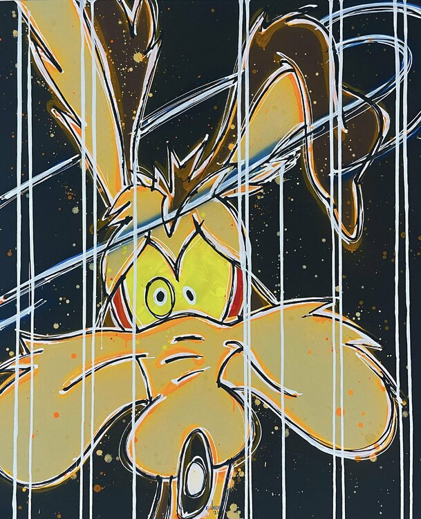 In dit stuk heb ik een levendige uitbarsting van energie en houding ontketend, waarbij ik gedurfde acrylstreken verweef met de oneerbiedige geest van spuitkunst. De pop-art flair en figuratieve expressie roepen een ondeugende draai aan het vertrouwde op, begrensd door dynamische lijnen die een rauwe, geanimeerde essentie vastleggen. Dit kunstwerk belichaamt een gedurfd zelfvertrouwen, klaar om een krachtige en speelse sfeer in elke ruimte te injecteren.