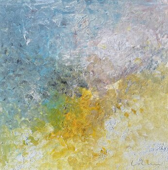 In dit werk combineer ik acrylverf met organische materialen om de delicate overgang tussen chaos en kalmte te verkennen en zo de vergankelijke essentie van de natuur op te roepen. Gelaagde texturen en kleuren leggen momenten van stilte vast tegen een turbulente achtergrond, waardoor een visuele dialoog ontstaat tussen sereniteit en turbulentie. Dit schilderij versiert niet alleen een ruimte, maar vult deze ook met een beschouwende en vitaliserende… energie.