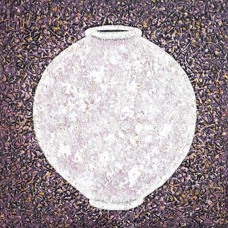 Dit werk begint met een poging om het onzichtbare bestaan van 'adem' te belichamen. De vorm van de pot in het midden van het scherm is niet zomaar een object, maar een vat dat de lagen van leven, herinnering en tijd vastlegt. De heldere textuur die de binnenkant vult, symboliseert een gecondenseerde verzameling ademhaling en energie, terwijl de donkere en dichte achtergrond de ruis en de stroom van de wereld suggereert.