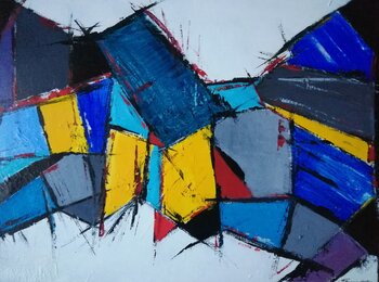 Kunstwerk op houten raamwerk. Klaar om op te hangen. Omlijsten op aanvraag.