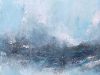 Dit schilderij in heldere en stralende blauwtinten nodigt ons uit om gevoelens van lichtheid en ontspannende rust te ervaren. Delicaat felgekleurde vlakken die aan wolken doen denken, werden door de kunstenaar voorzichtig en gemakkelijk in een schijnbaar eindeloos blauw ingevoegd en geven het kunstwerk een bijzonder sierlijk beeldstatement. De compositie heeft een donkerder gekleurd gebied, dat wordt onderbroken door helderblauw te midden van grijstinten.… De titel van de afbeelding verwijst naar oneindigheid en toch vormt het een puzzel. "Naar oneindig en terug" is een kunstwerk dat uitnodigt om ernaar te kijken en maakt indruk met talloze fijne details en kleurnuances. Het straalt een bijzondere lichtheid uit die Françoise Wattré prachtig in beeld bracht met alleen verf en penseel. Een werk vol kracht en rust, dat optimisme uitstraalt en vreugde geeft.