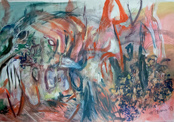 perceptie en emotionele reacties op de buitenwereld. Gefascineerd door landschappen en plantkunde, worden de kenmerkende abtracties van Ostermeier meestal gemaakt met acrylverf, olieverf en pastelkleuren op canvas.